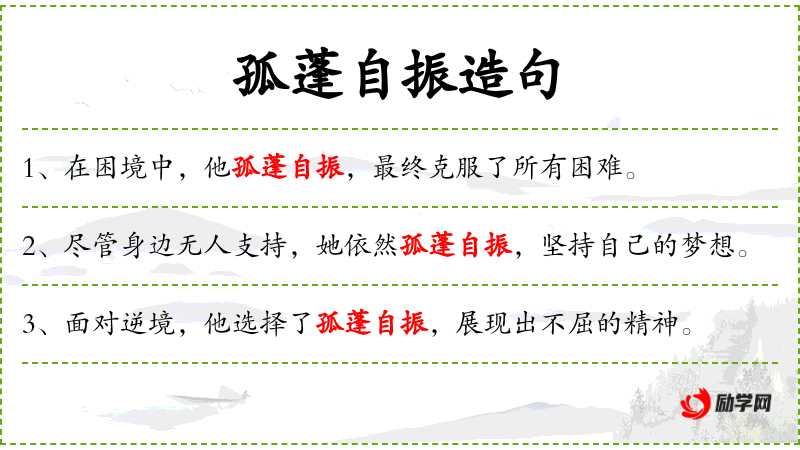 - 孤蓬自振:源自**传统文化,比喻在困境中自我振作,不依赖他人。