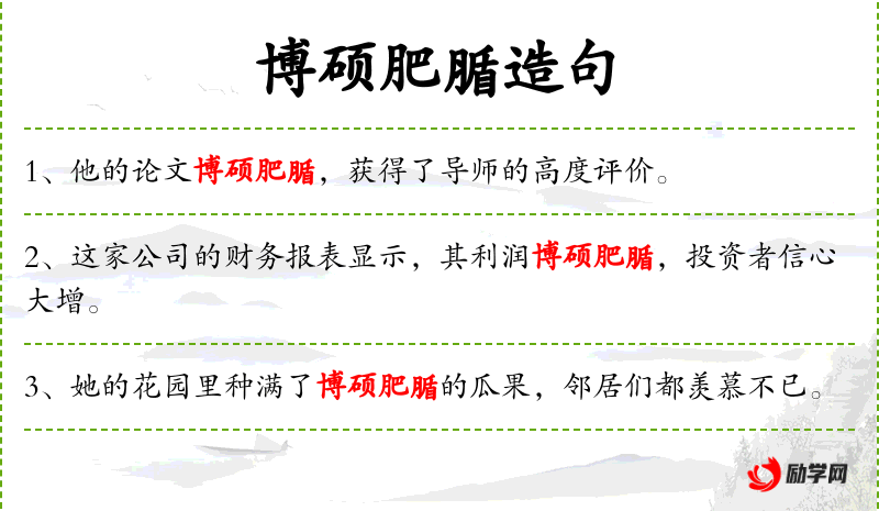 - 博硕肥瓯:形容内容丰富、深厚、充实。