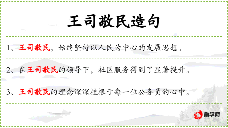 1. 【王司敬民】 - 王:君主;司:主持。君王主持国家的职责在于尊重老百姓。