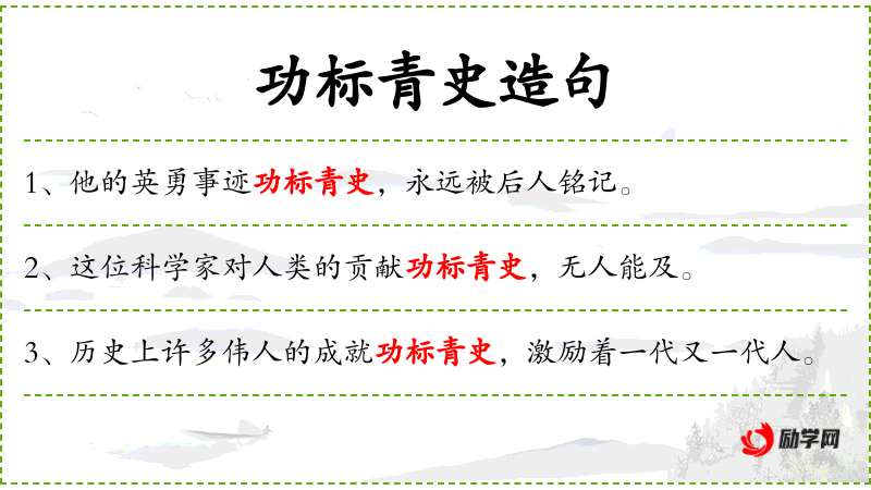- 功标青史:名垂青史、永载史册