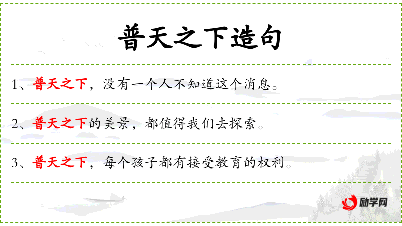 1. 【普天之下】 指整个天下;遍天下。