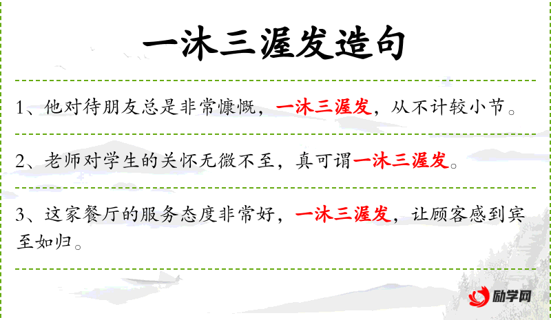 1. 【一沐三渥发】 - 沐:洗头。洗一次头要停顿三次。形容渴求贤才,谦恭下士
