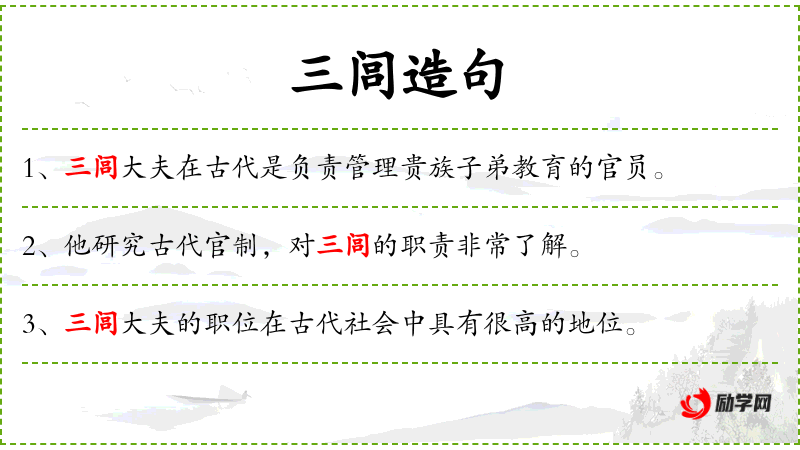 战国楚官名,掌昭﹑屈﹑景三姓贵族。屈原曾任此职。