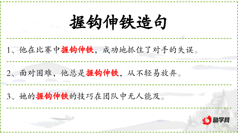 - 文化意义:“握钩伸铁”这个成语体现了**文化中对坚韧和毅力的重视。