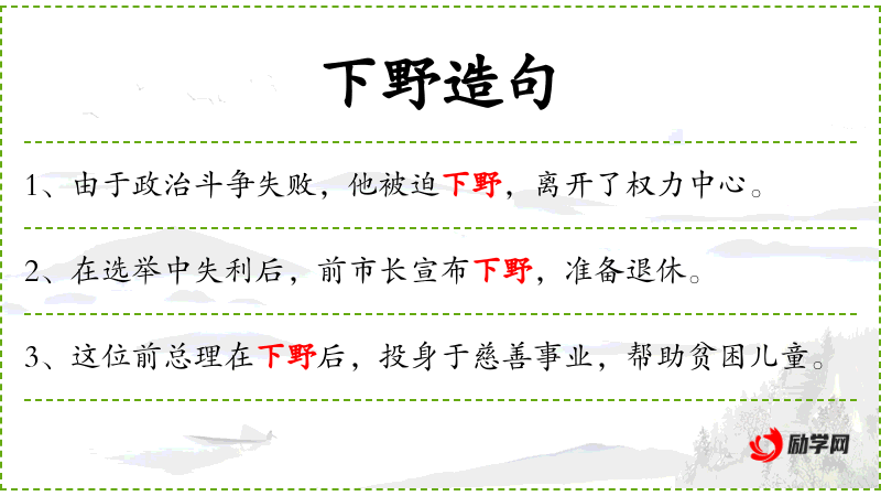 1. 【下野】 旧指掌握军政重权的人卸去职权。