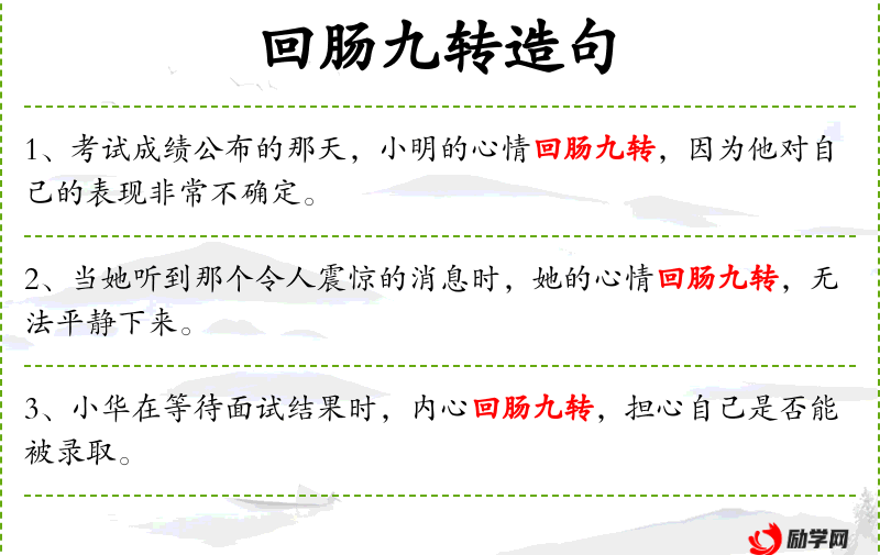 “回肠九转”是一个汉语成语,用来形容心情复杂,波动不定。这个成语蕴含了深厚的文化意义,常用于描述人在重大**或决策面前的心理状态。