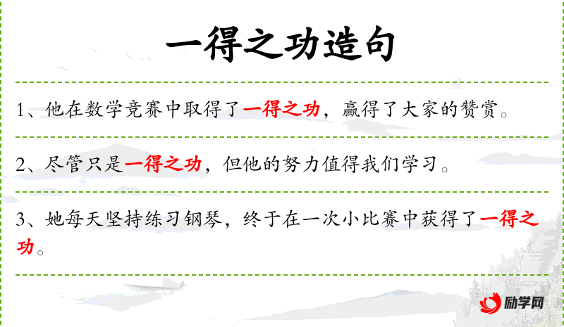 1. 【一得之功】 一得:一点心得,一点收获;功:成绩。一点微小的成绩。