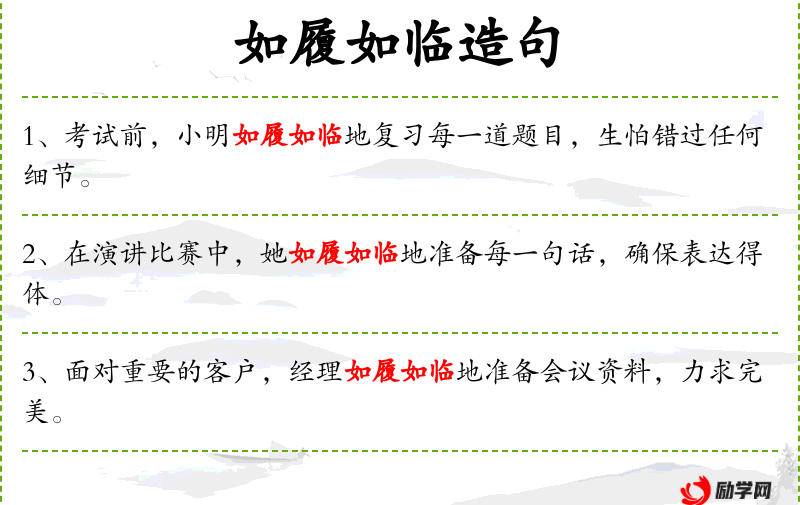 在翻译中,“如履如临”可以翻译为“with utmost care”(英文)、“念入りに”(日文)或“mit größter Sorgfalt”(德文),都传达了小心谨慎的含义。
