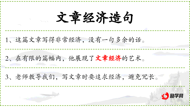 - “通过掌握文章经济的原则,我们的写作效率将得到提升。”