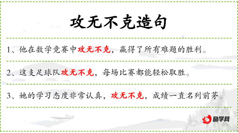 - 攻无不克:成语,意思是无论什么困难都能克服,强调团队的强大能力和无畏精神。