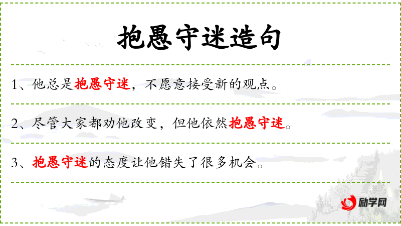 - 抱愚守迷:成语,意思是坚持错误的观点或行为。