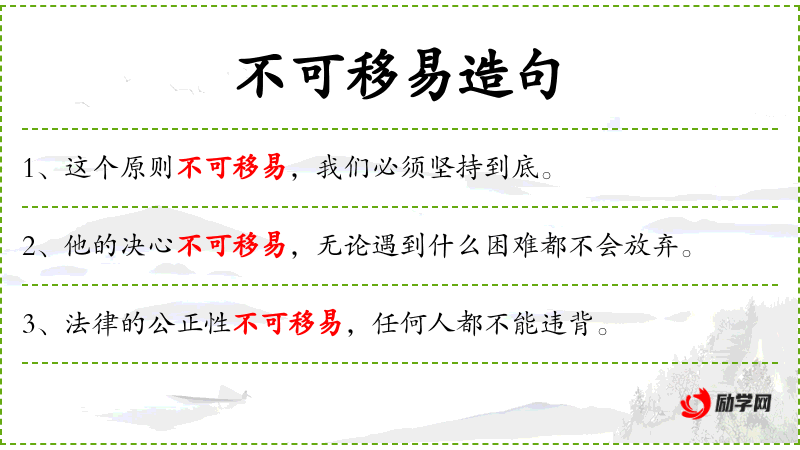- 不可移易:表示不可改变或不可移动的,强调其固定性和不可变性。