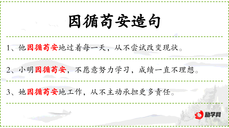 - 状语:因循苟安