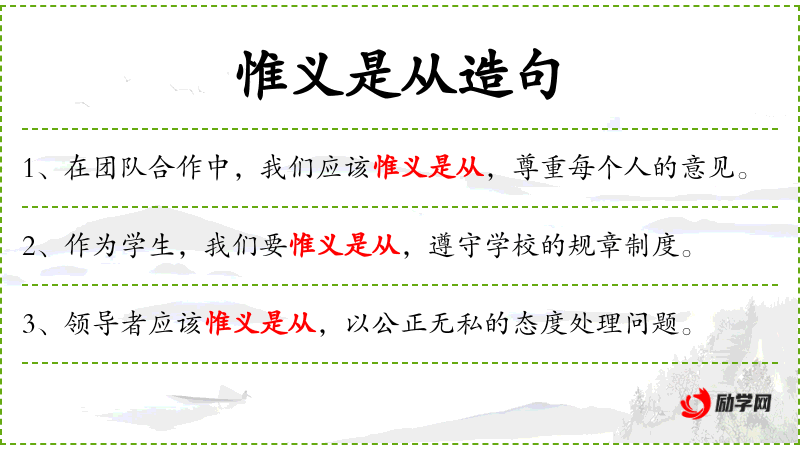 1. 【惟义是从】 只要有道理或道义就坚决服从。