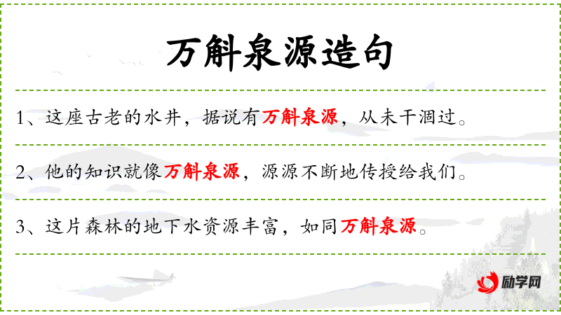 1. 【万斛泉源】 - 斛:十斗。本指泉源丰富。后比喻文思敏捷。