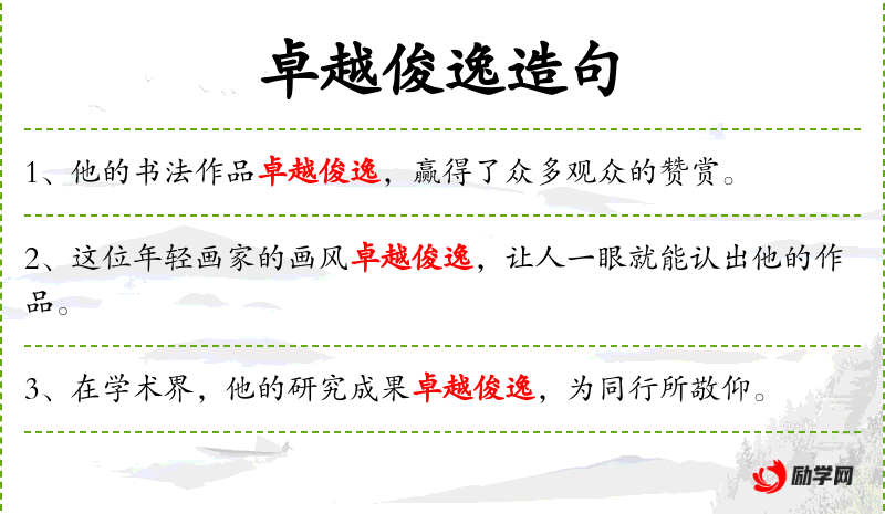 - 卓越俊逸:形容词短语,表示非常优秀且优雅。