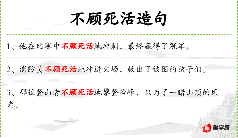 - 不顾死活地:形容词性短语,表示不顾一切危险,非常勇敢或鲁莽。