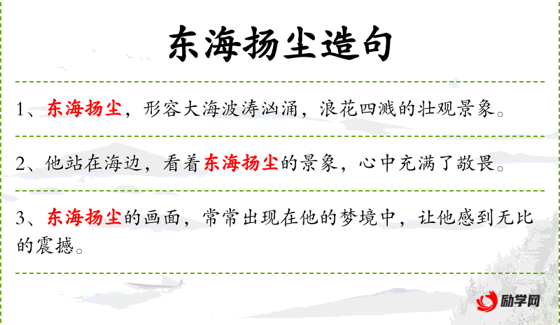 句子:“每当台风来临,东海扬尘的景象总是让人印象深刻。”
