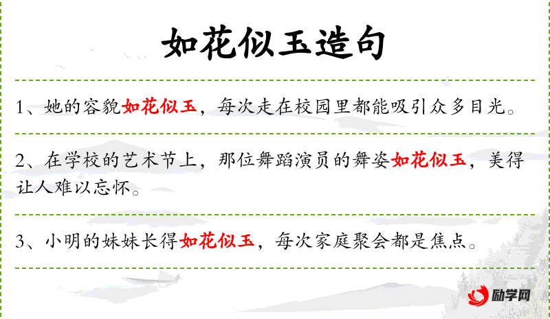- 如花似玉:形容女性美丽如花,温润如玉。