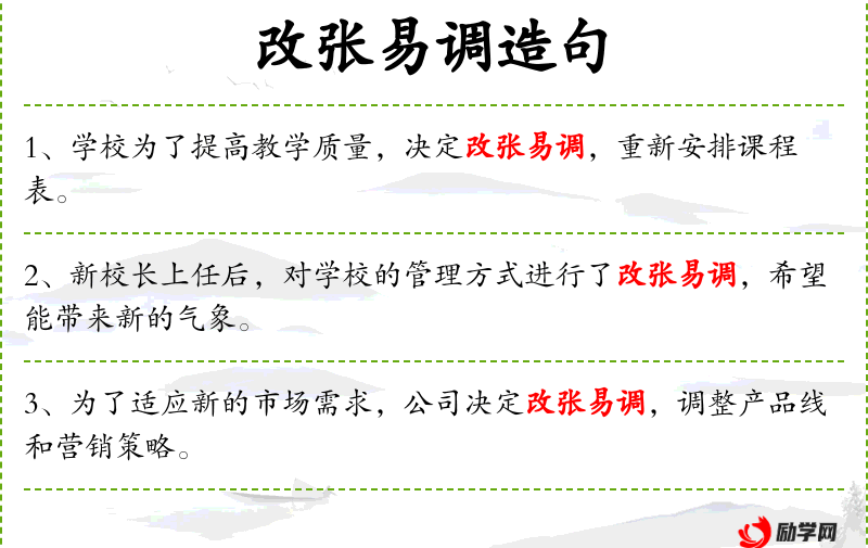 句子中的“改张易调”是一个较为正式和专业的表达,常用于描述组织结构的调整。在**文化中,强调团队合作和效率提升是企业管理的重要方面。
