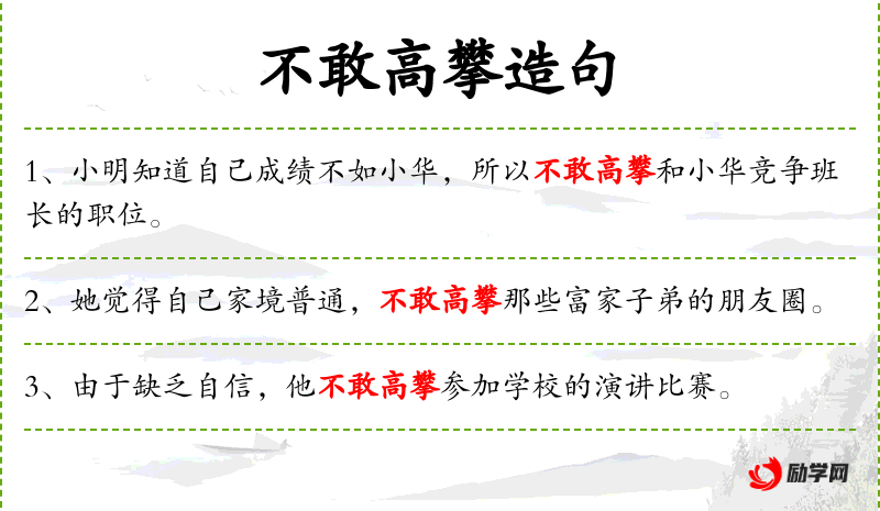 1. 【不敢高攀】 - 不敢跟社会地位比自己高的人交朋友或结亲戚。