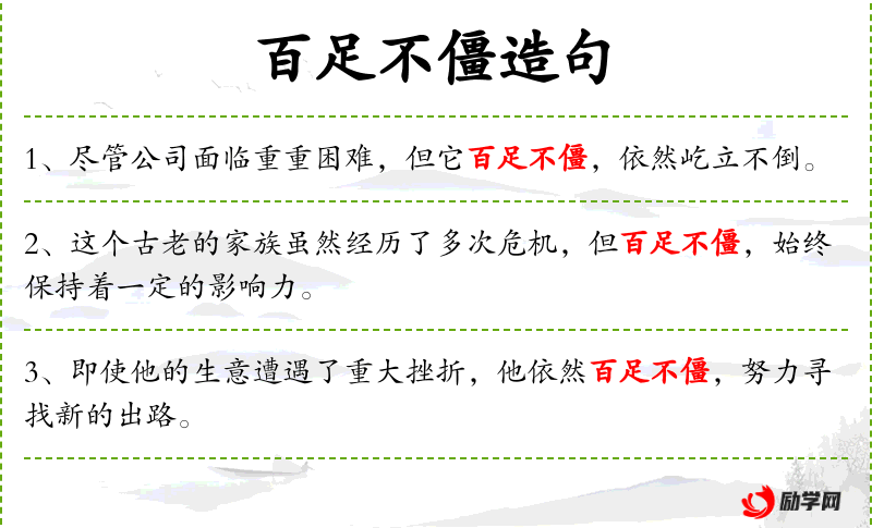 1. 【百足不僵】 比喻势力雄厚的集体或个人一时不易垮台。