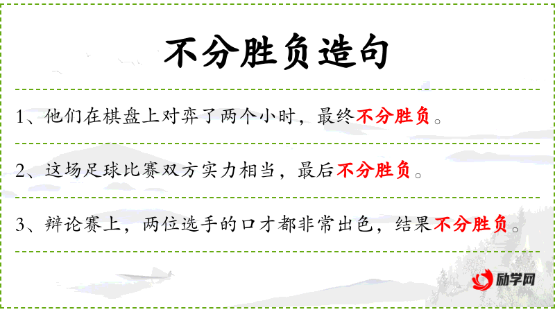 - 难分难解:形容双方实力相当,难以分出胜负。