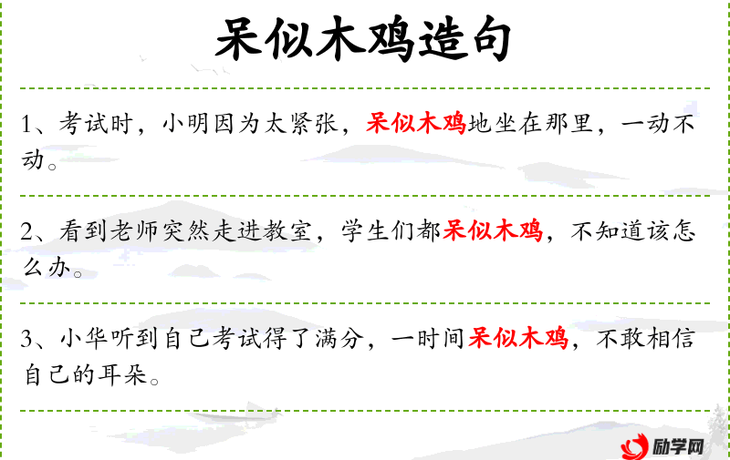 - 语境:在描述小丽的反应时,作者通过使用“呆似木鸡”这个成语,强调了她的惊讶程度,同时也反映了她在班级中的地位和同学们的期望。