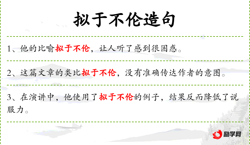 - 拟于不伦:不恰当、不合适、不协调
