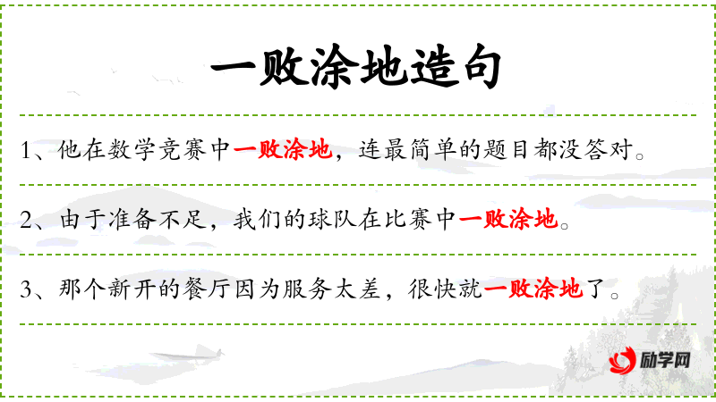 1. 【一败涂地】 - 一旦失败就肝脑涂地。形容失败到了不可收拾的地步。