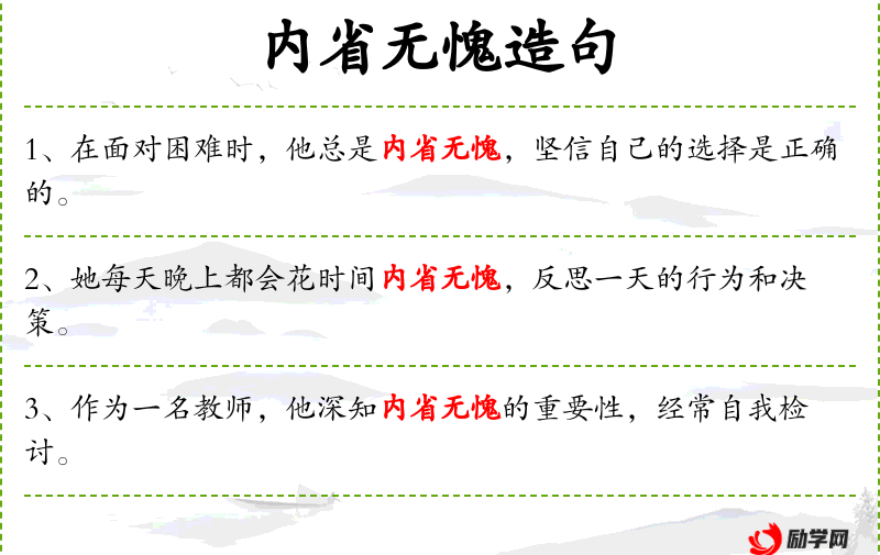 - 内省无愧:自省无憾、自我反省无悔