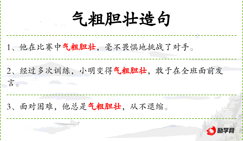 1. 【气粗胆壮】 - 气势旺盛,胆子很大。形容气势很盛。
