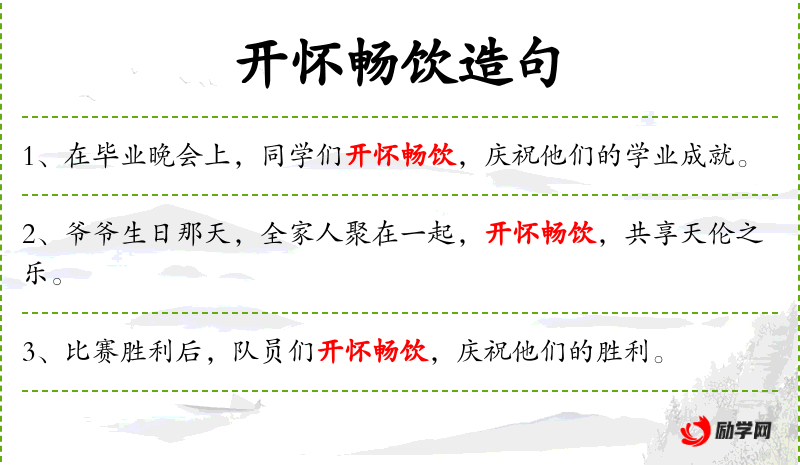 - 开怀畅饮:形容人们心情愉快,尽情地喝酒。