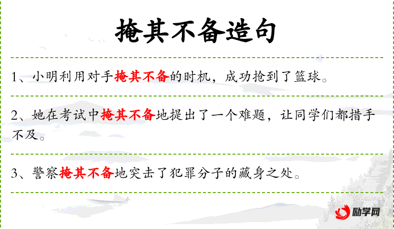 句子:“小偷掩其不备地进入了无人看守的商店。”