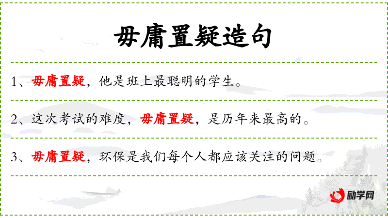5. 【毋庸置疑】 毋庸:不必。不必怀疑。