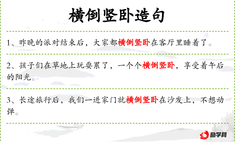 3. 【横倒竖卧】 躺卧凌乱的样子。