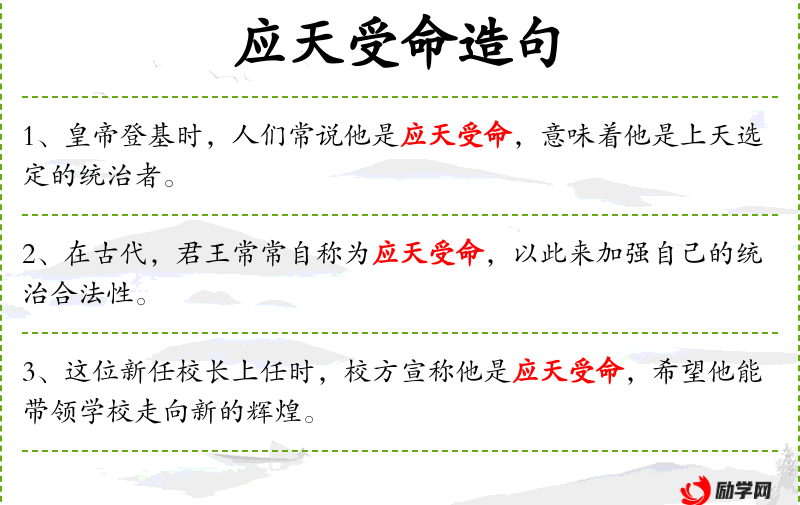 - 应天受命:源自*传统文化,意指顺应天意,接受天命。 . 注定:表示某种命运或结果是不可避免的。