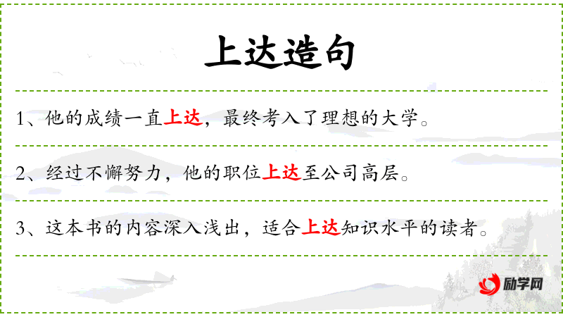 1. 【上达】 古谓士君子修养德性,务求通达于仁义; 谓上知天命; 上进,向上发展; 谓下情达于君上。