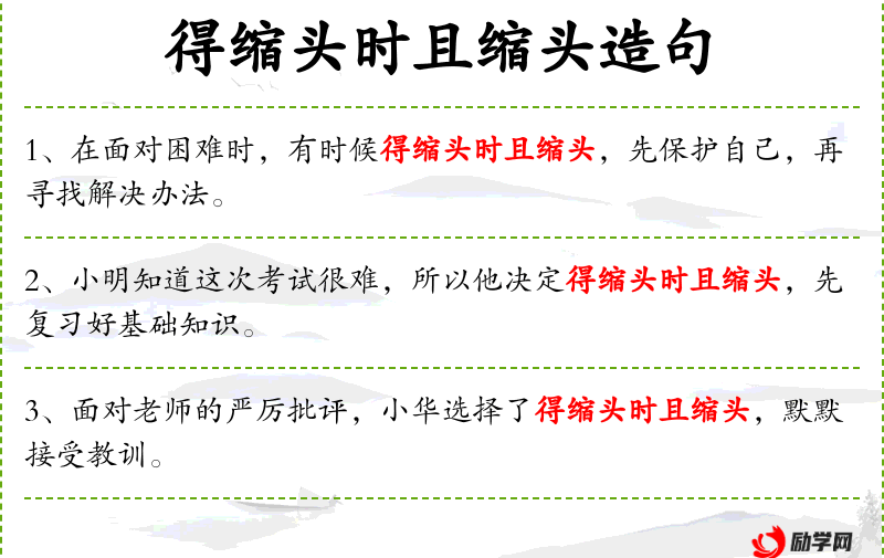- 宾语:得缩头时且缩头,默默接受教训