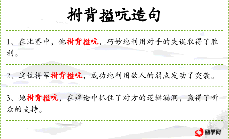 句子:“他拊背搤吭,在竞争中抓住了对手的弱点,成功地超越了他们。”