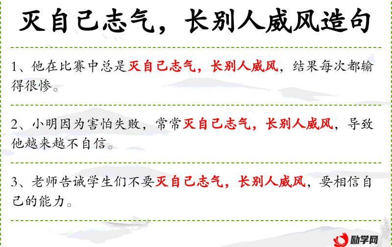 3. 【志气】 不甘落后,力求达到一定目的的决心和勇气。是有理想、有信心的表现。有志气的人,往往奋斗目标明确,意志坚定,不怕各种困难。越是在困难落后的条件下,越是能显示志气的精神、力量。