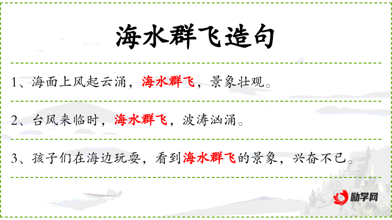 7. 【海水群飞】 - 海水飞腾,狂乱地涌起。比喻国家不安宁。