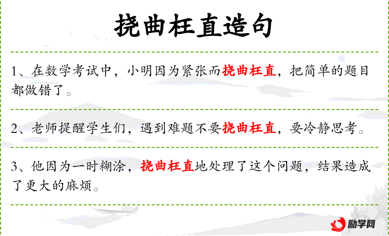 句子:“在数学考试中,小明因为紧张而挠曲枉直,把简单的题目都做错了。”