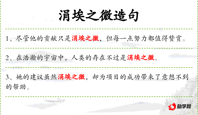 1. 【涓埃之微】 - 涓埃:细小的流水和尘埃。比喻特别小或特别少,微乎其微。