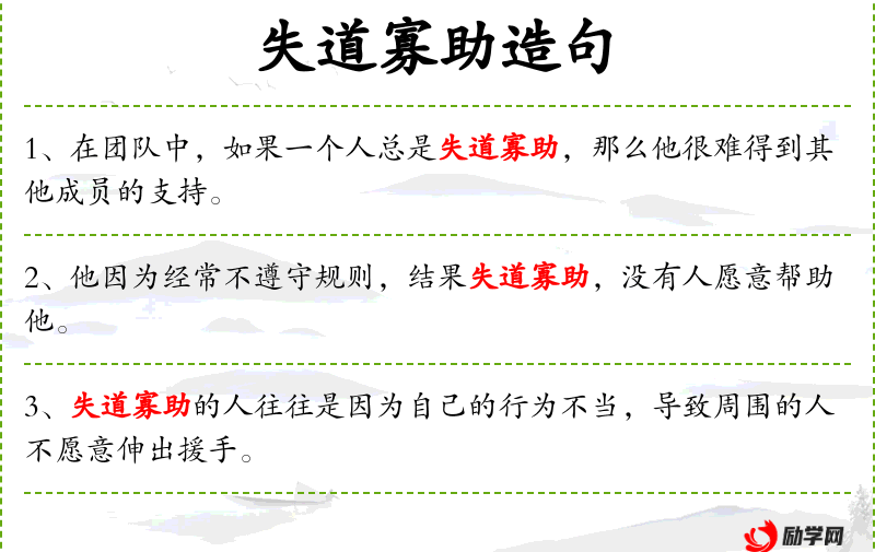 - 失道寡助:这个成语源自**传统文化,强调了行为准则和人际关系的重要性。