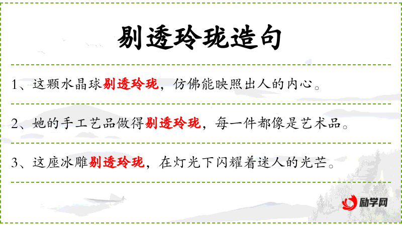 - 谓语:“剔透玲珑”和“充满了韵律美”