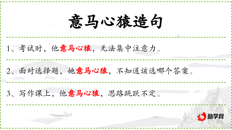- 谓语:意马心猿,总是分心