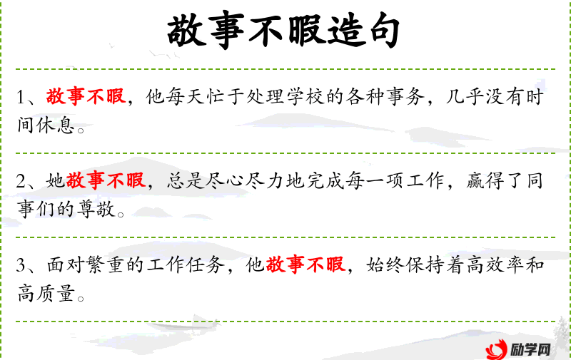 句子:“敬事不暇的经理,总是亲自监督每一个项目的进展,确保一切顺利。”