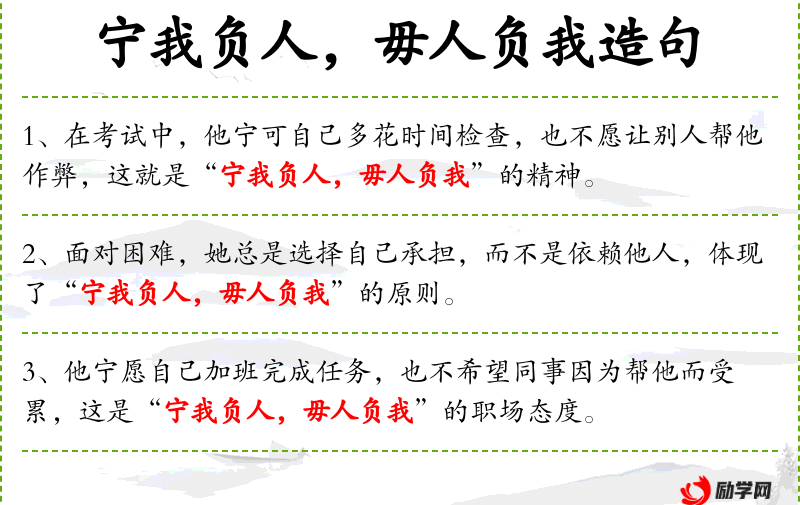 - 成语“宁我负人,毋人负我”:这个成语源自**古代,表达了一种宁愿自己吃亏也不让他人吃亏的道德观念。