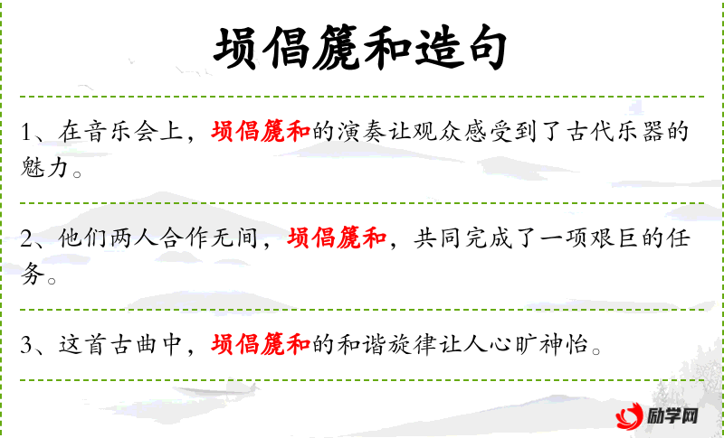 - 埙倡篪和:这个成语源自**古代,反映了中华文化中对和谐与合作的重视。